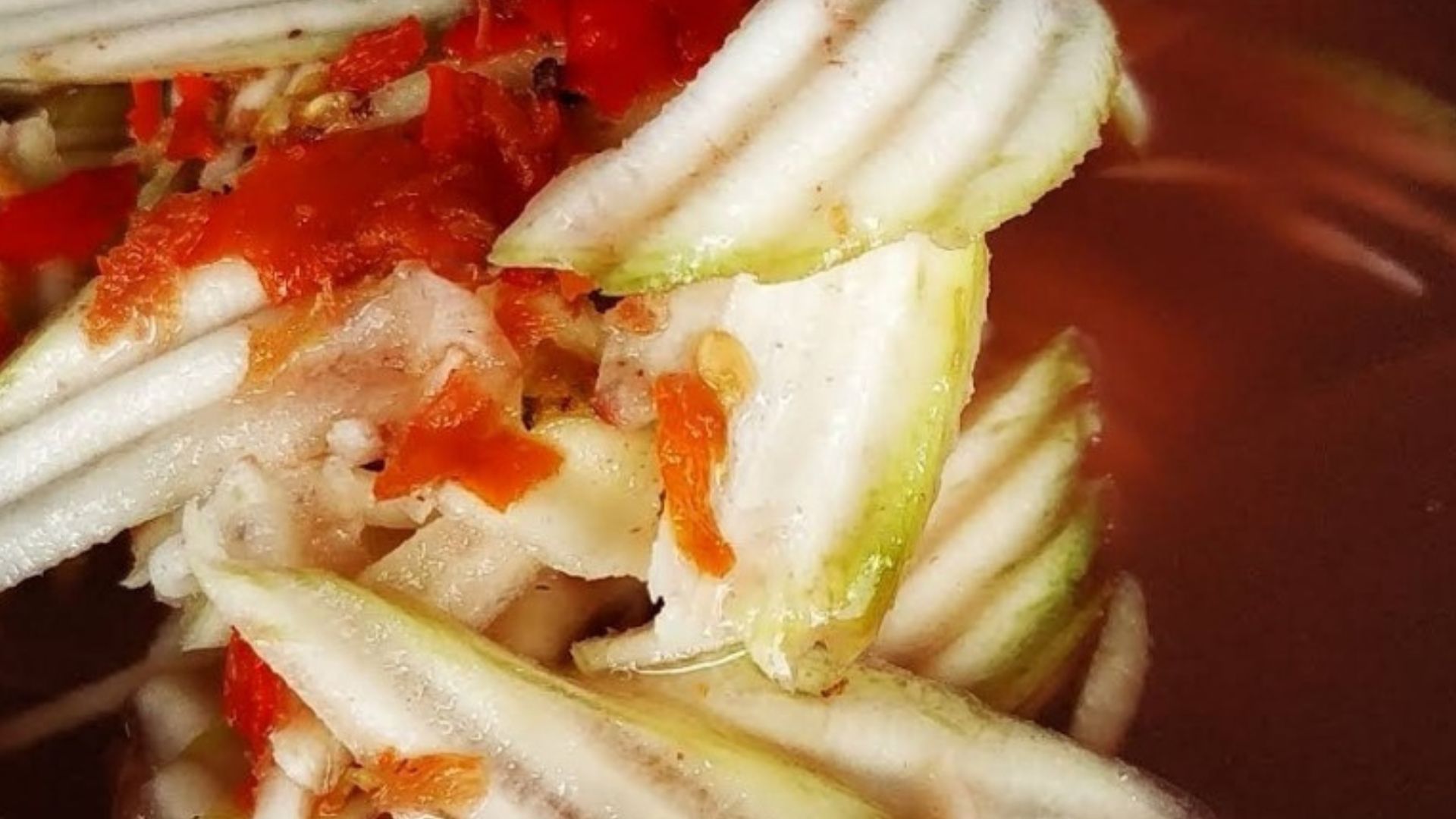 • Grüne Mango – sauer und frisch, passt perfekt zur herzhaften Brühe
