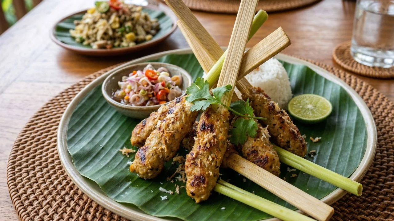 Mientras que la mayoría de los satés se hacen con trozos de carne ensartados en un palito, el Sate Lilit balinés es diferente. La carne (puede ser pollo, cerdo, caballa, o incluso tortuga en tiempos antiguos) se muele finamente, se mezcla con coco rallado, leche de coco, jugo de lima, chalotes y, por supuesto, especias.