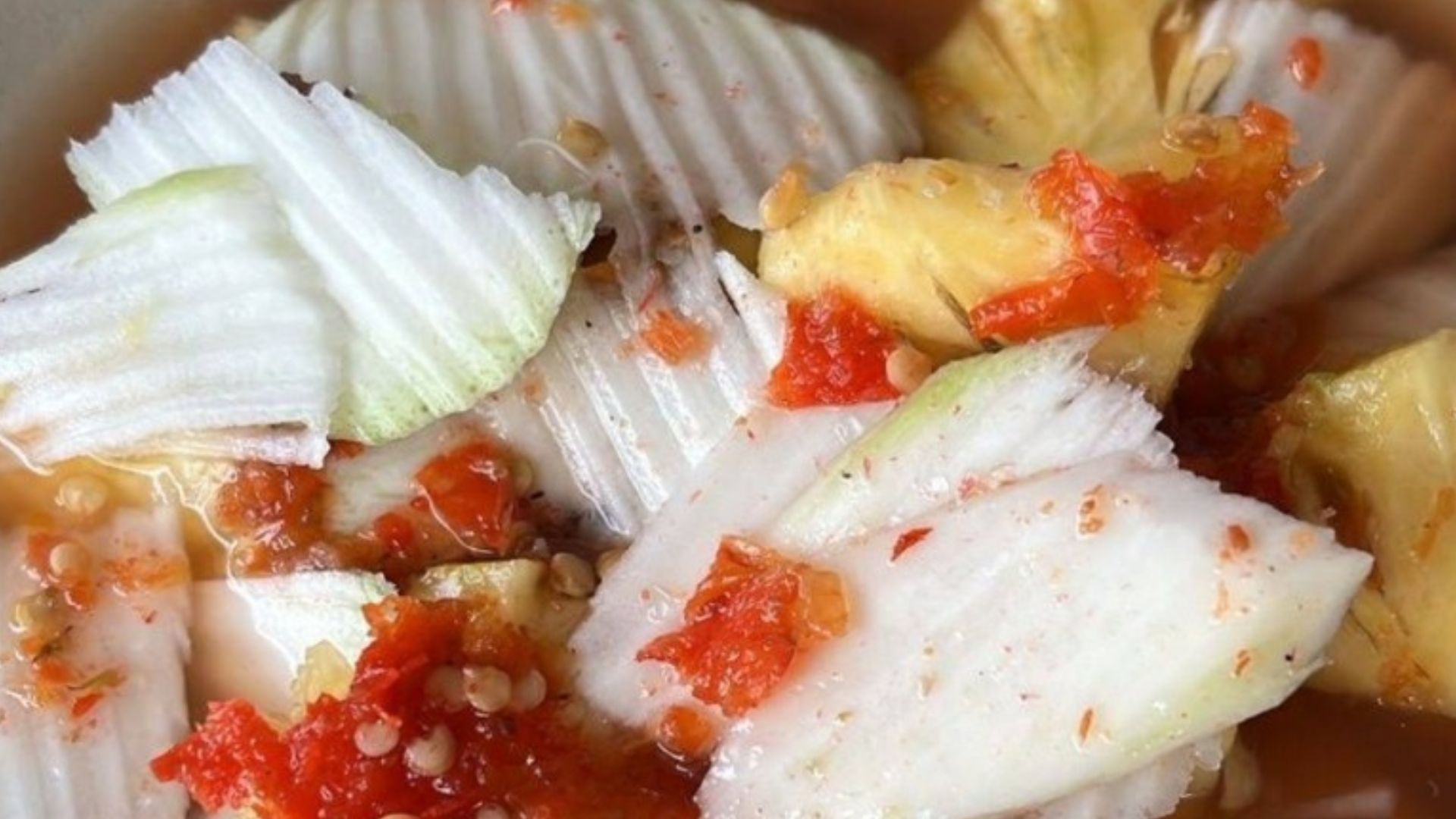 Ce qui rend le rujak kuah pindang exceptionnel, c’est le contraste de saveurs qui explose en bouche. Le piquant des piments, le goût umami de la pâte de crevettes et du bouillon de poisson, la fraîcheur des fruits, et l’arôme marin subtil du bouillon… Ce n’est pas un goût commun, mais c’est justement cela qui rend ce plat si addictif.